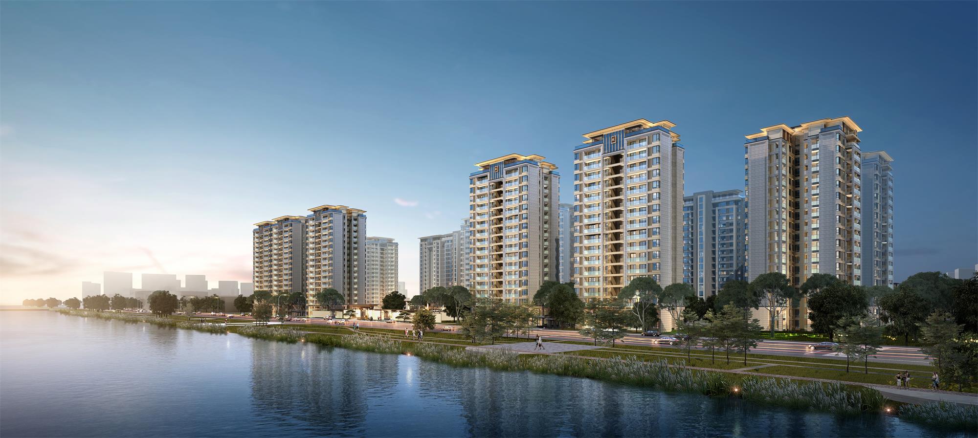 江山和鳴央璽項目位于犍為方舟新城核心區(qū),占地面積70畝,容積率為2.0,建筑面積9萬㎡,項目由9棟高層和商業(yè)別墅組成,總共800余戶,采用一字形點式布局,半圍合出一前一后兩大中庭和四個園林,80%以上房源可觀濕地公…